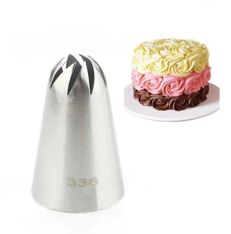 Насадка # 336 предназначена для создания украшений с глубоким рифлением. С её помощью Вы сможете украсить свое кондитерское изделие звездами, ракушками, замысловатыми цветами, рифленым бордюром и т.п.