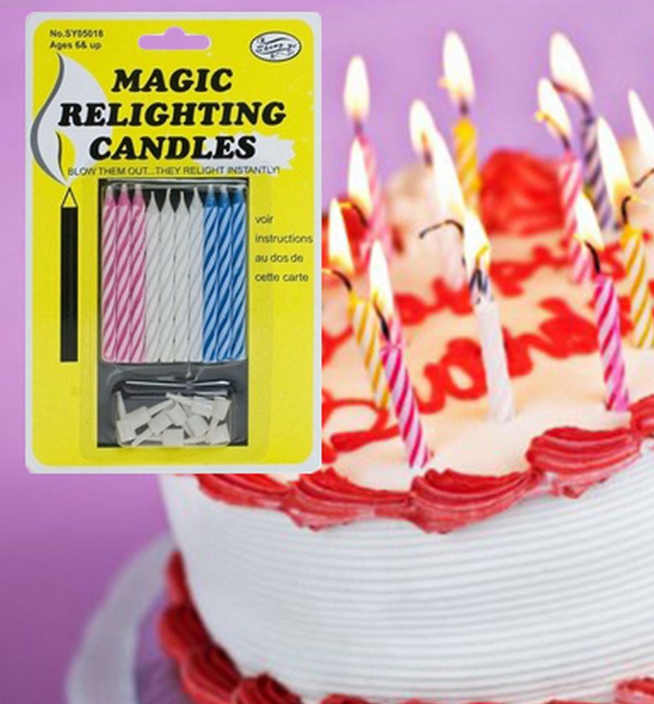 Магические свечи, которые задуваются, и заново загорают. Интересный прикол для именинника. А для деток возможность несколько раз подряд задуть свечи и загадать желание.