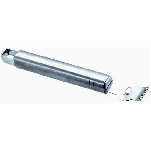 Нож для снятия цедры позволяет тонко срезать верхний слой кожицы с любых цитрусовых. При помощи этого ножа Вы с лёгкостью можете сделать фигурную стружку, тонкие полоски и завитки из цедры лимона, грейпфрута, апельсина или лайма. Цедра цитрусовых широко используется в кулинарии и в кондитерском производстве, а также для украшения коктейлей и десертов.