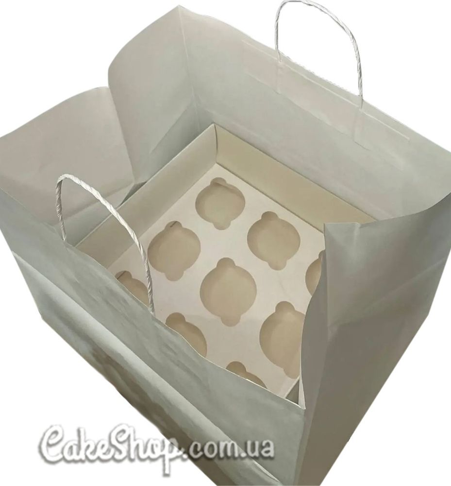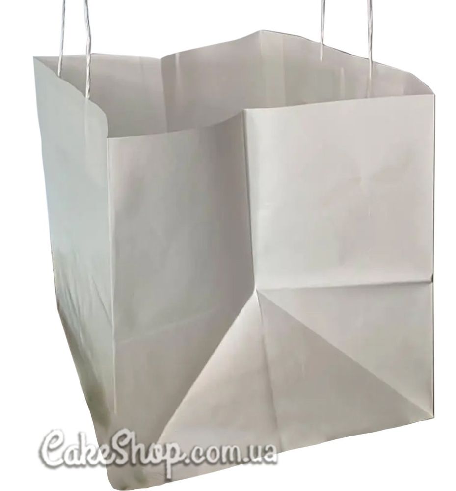 Цена на Пакет бумажный с кручеными ручками Белый, 33х28х27 см равна 35 грн.