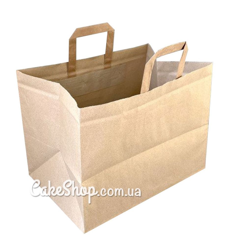 Цена на Пакет бумажный с плоскими ручками Крафт, 24х32х22 см равна 15 грн.