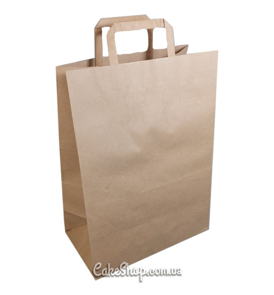 Цена на Пакет бумажный с плоскими ручками Крафт, 33,5х26х14 см равна 15 грн.