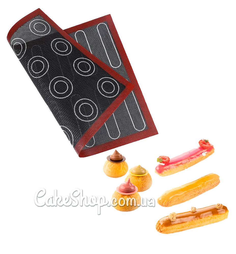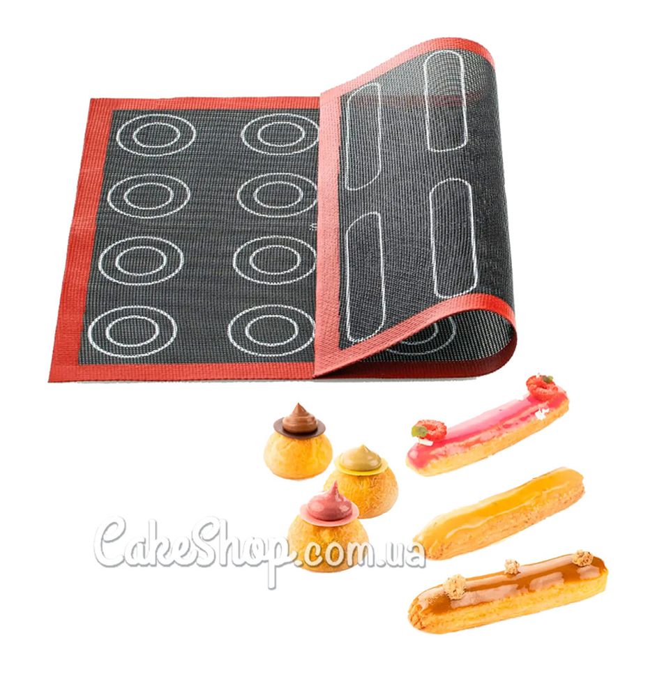Спеціальний мікроперфорований силіконовий коврик допоможе вам завжди отримувати ідеальний розмір еклерів. Завдяки перфорації при випічці відбувається повне обдування виробів.