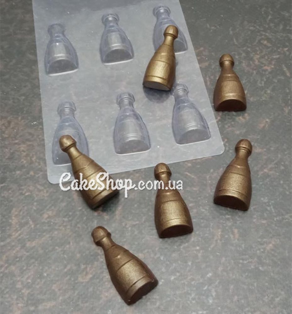 Цена на Пластиковая форма для шоколада Бутылочки шампанского 3D (мини) равна 55 грн.