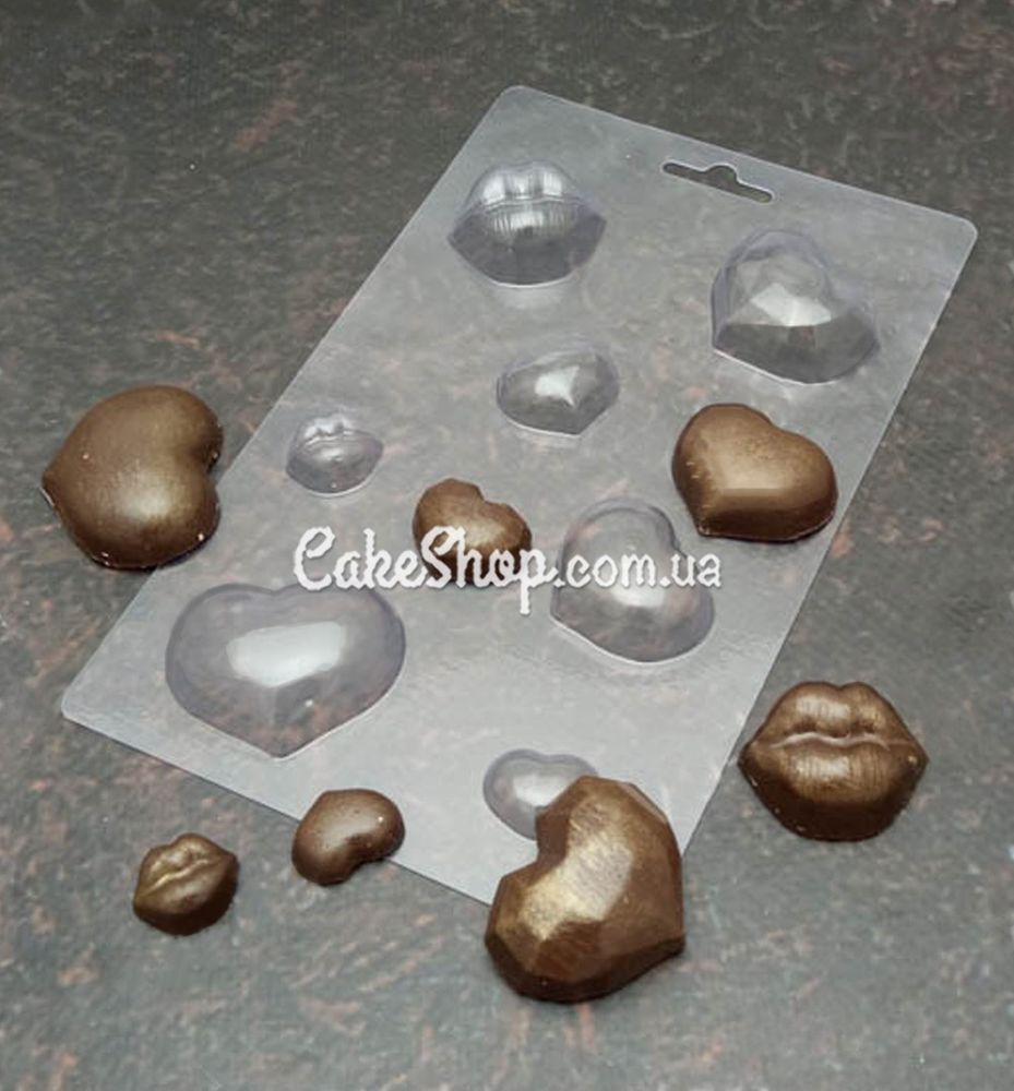 Пластиковая форма для шоколада набор Сердец и Губ