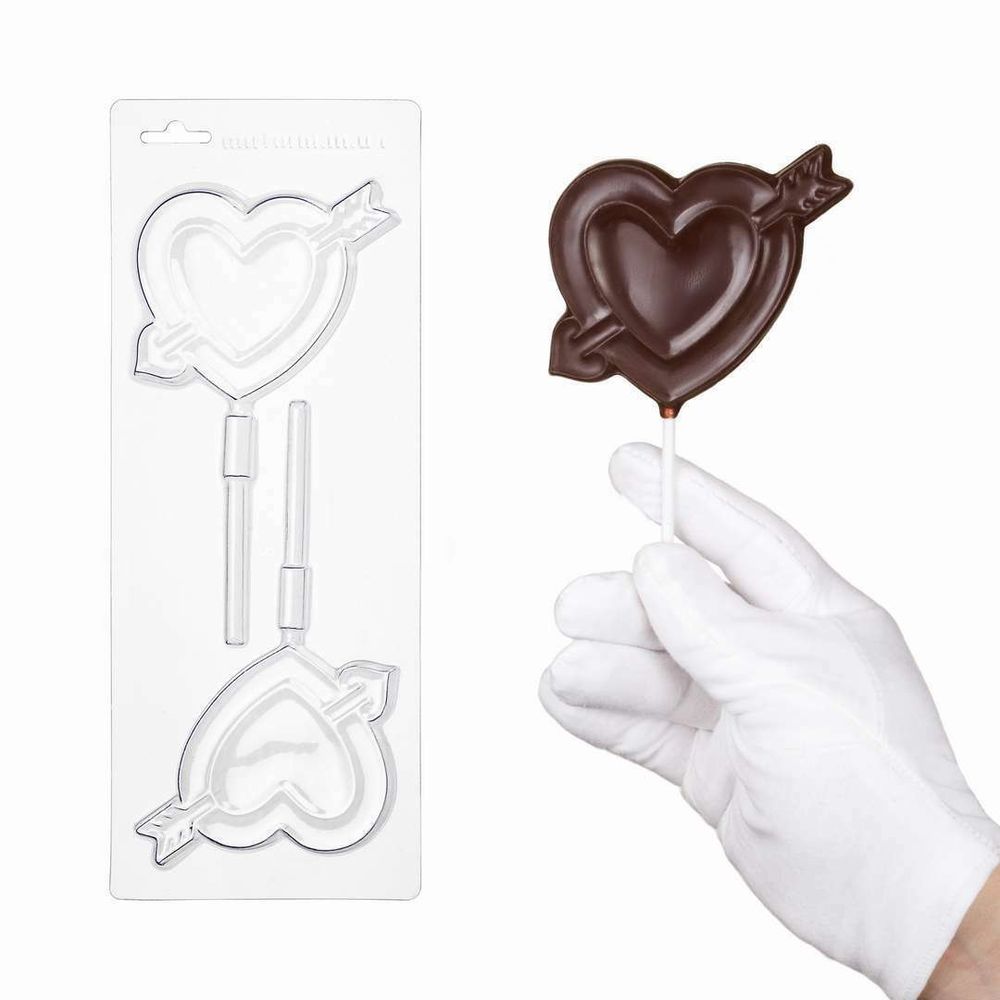 Пластиковая форма для шоколада Сердце на палочке
