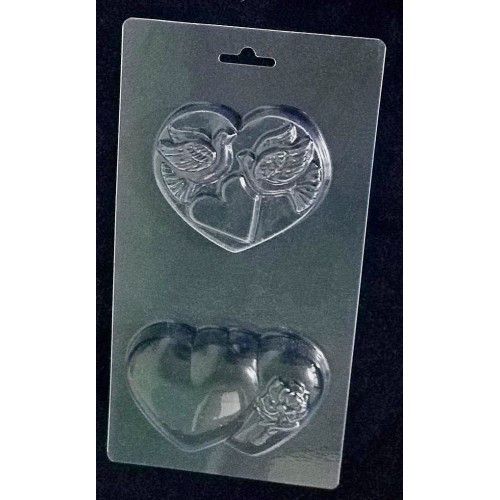 Пластиковая форма для шоколада Голуби и Роза на сердце