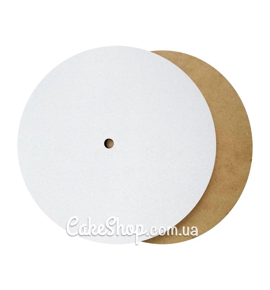 Цена на Подложка для многоярусного торта с отверстием белая (ДВП), d-14 см равна 11 грн.
