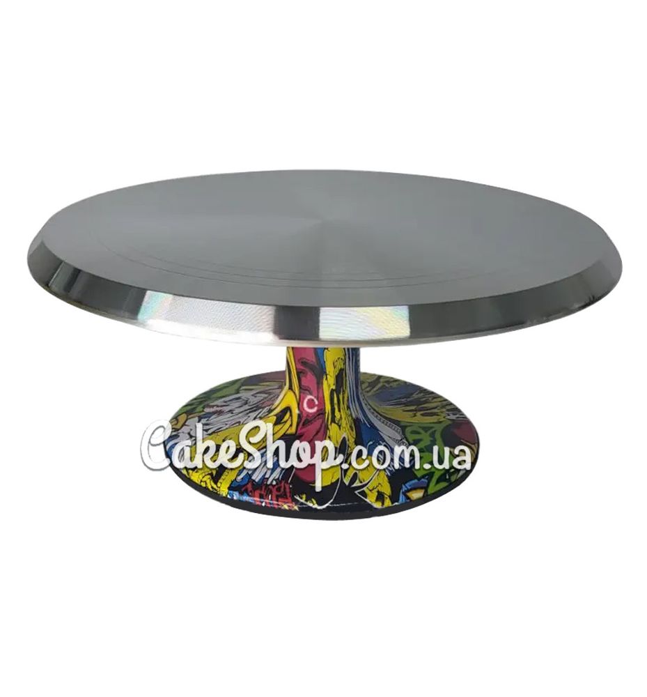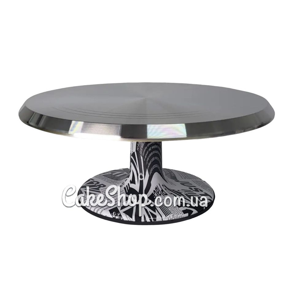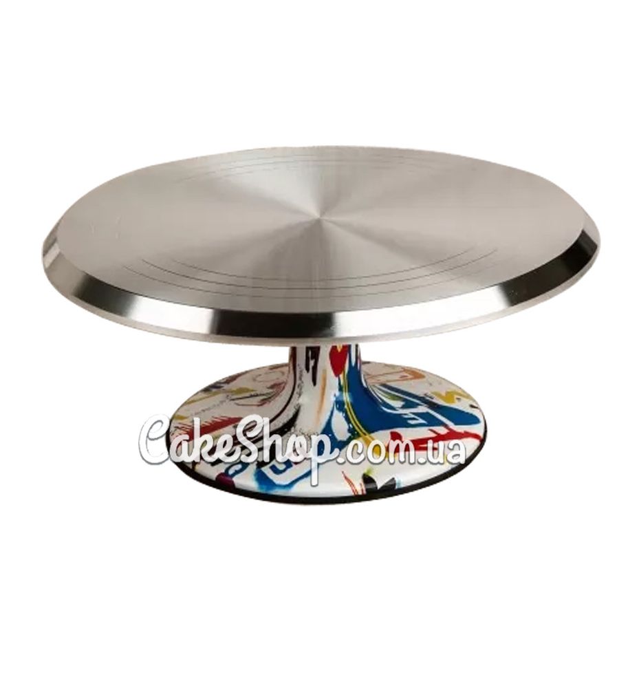 Вращающаяся подставка для торта позволяет легко и удобно декорировать торт и создавать цветы. Подставка ровная, легко поворачивающаяся, очень прочная, подходит как для домашнего, так и для профессионального использования. Ножка подставки прорезиненная, что предотвращает скольжение подставки по поверхности стола. Подставка сделана из металла, поворотный механизм – подшипник.