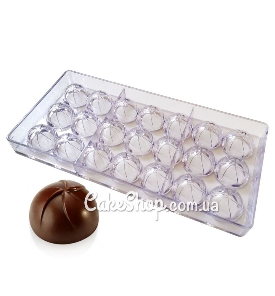 Цена на Поликарбонатная форма для конфет Полусфера рифленая 2 равна 120 грн.
