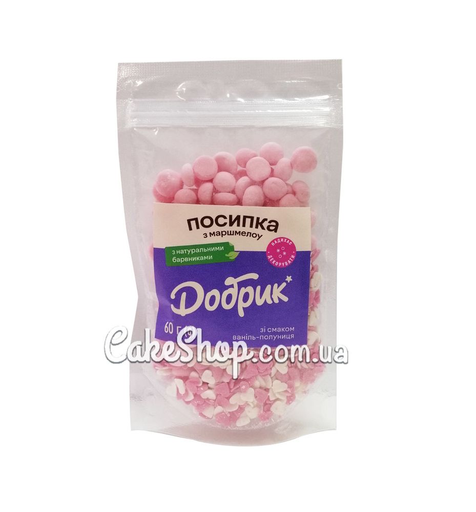 Цена на Посыпка фигурная со вкусом Ваниль-клубника и маршмелоу Добрык, 60 г равна 62 грн.