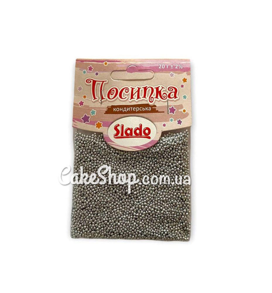 Цена на Посыпка круглая металлик ТМ Сладо серебряная 1 мм, 20г равна 18 грн.