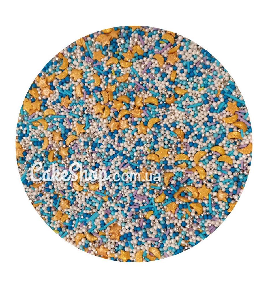Цена на Посыпка сахарная Перламутровый микс звезды, месяц, серебро #8, 50г равна 40 грн.