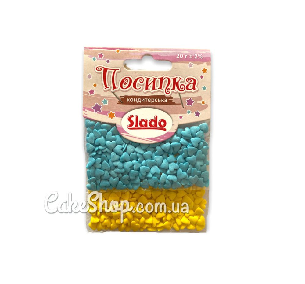 Цена на Посыпка в стиках ТМ Сладо патриотическая #16 сердечки, 20 г равна 10 грн.