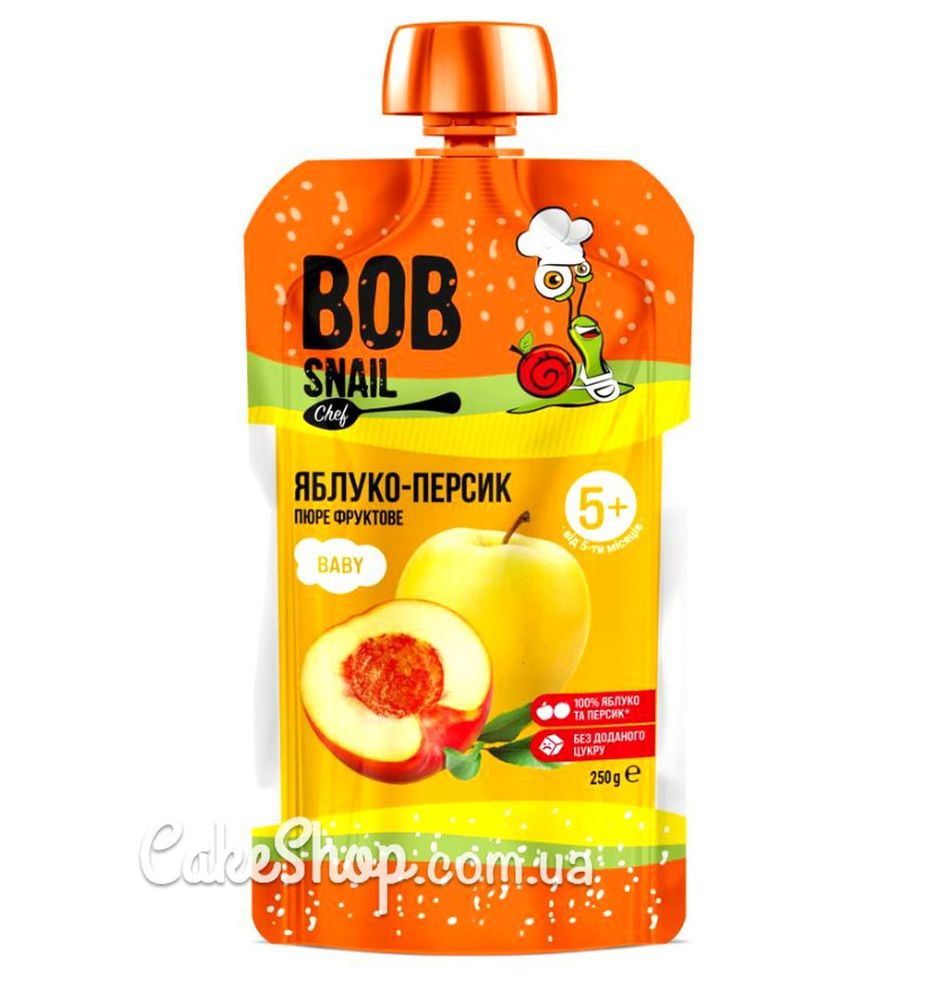 Цена на Пюре яблоко-персик без сахара Bob Snail, 250 г равна 82 грн.