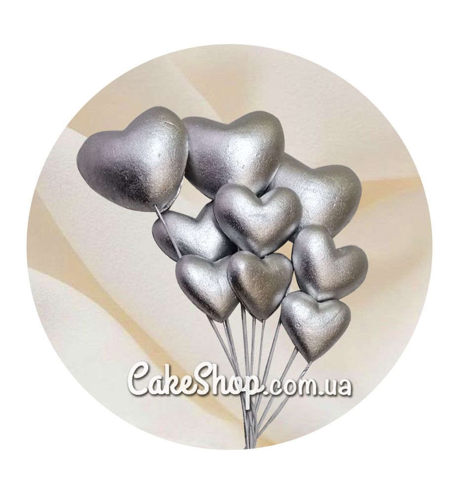 Цена на Сахарные фигурки Сердечки 2Д серебряные ТМ KD равна 55 грн.