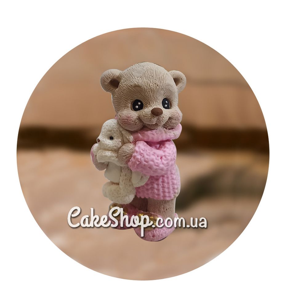Шоколадная фигурка Мишка Беж с белой игрушкой в розовом свитере ТМ ДимК