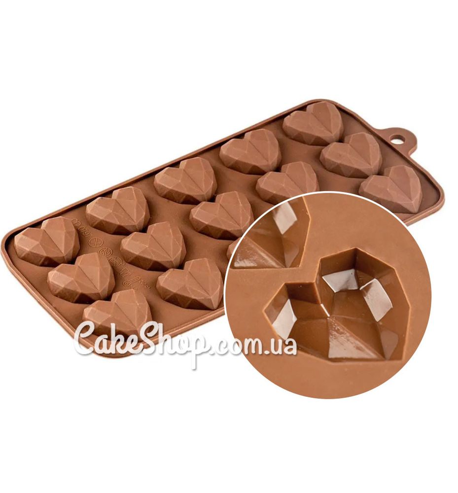Цена на Силиконовая форма для конфет, льда и мармелада Сердца граненые равна 65 грн.