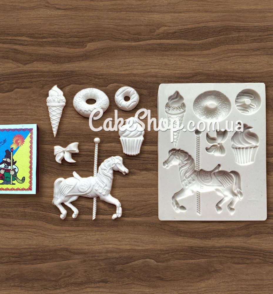 Цена на Силиконовый молд Карусельная лошадка и сладости равна 319 грн.