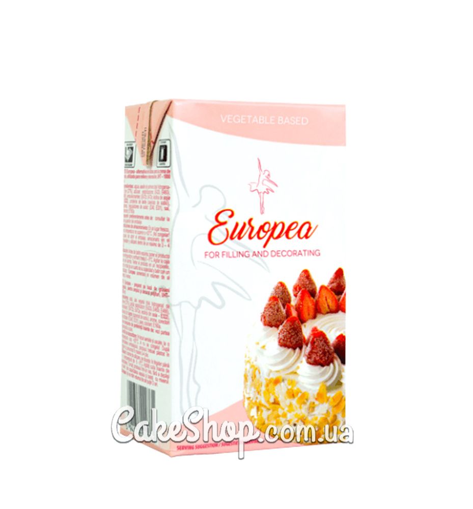 Europea – это безмолочный топинг, специально созданный, чтобы максимально походить на молочный, но все же сохраняя качества немолочных сливок. По структуре, цвету и вкусу очень трудно отличить от обычных молочных сливок.