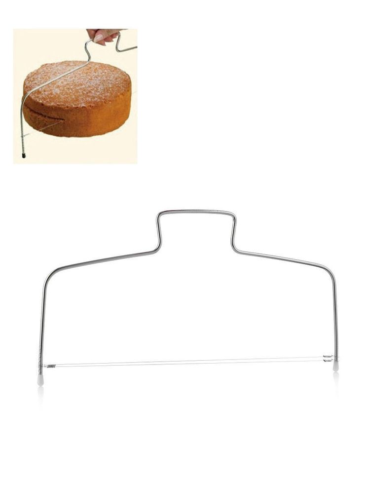 Нож-струна изготовлен из нержавеющей стали. Рукоятка имеет арочную форму со струной, которая прикреплена к свободным краям. Нож имеет достаточно плотное натяжение струны, что поможет быстро и ровно нарезать высокие торты.