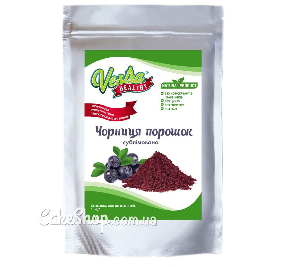 Цена на Черника сублимированный порошок Vestra 0-1 мм, 50 г равна 215 грн.