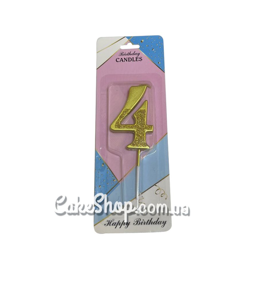 Цена на Свеча цифра с блестками Золото - 4 равна 40 грн.