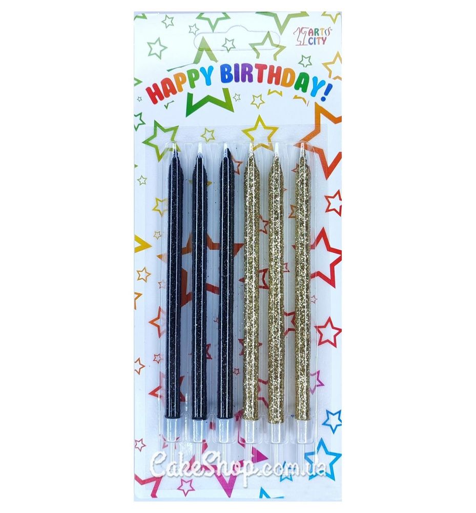 Цена на Свечи тортовые Бархат золото черные, 12 см равна 45 грн.