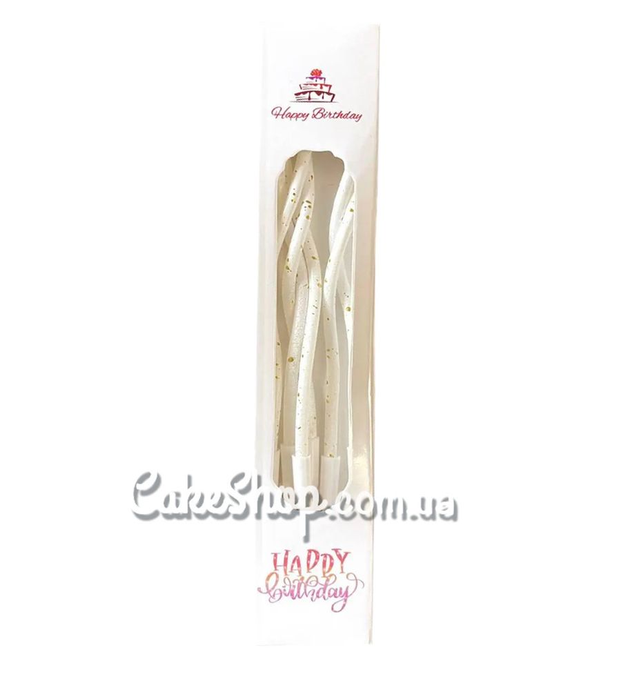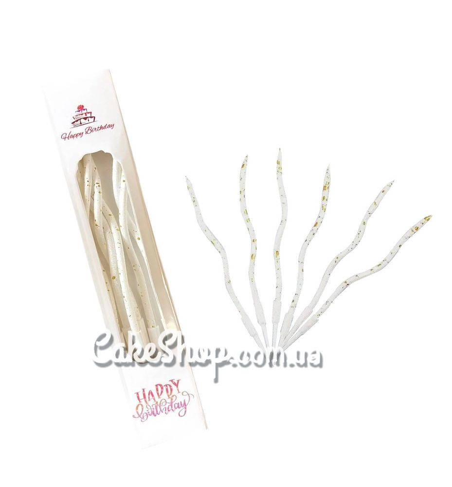 Цена на Свечи тортовые Коктейльные белые с золотыми каплями, 6 шт равна 50 грн.