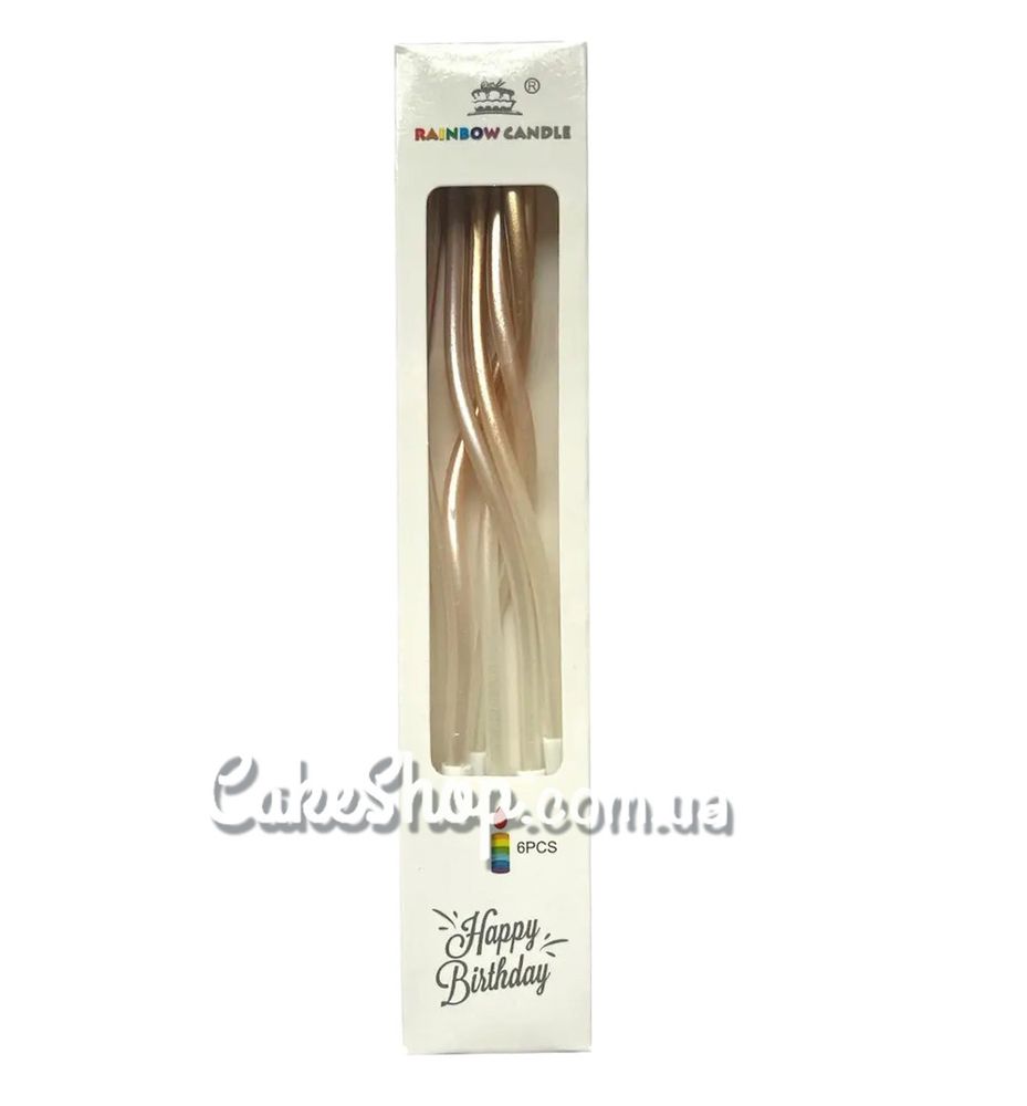 Цена на Свечи тортовые коктейльные Омбре шампань-белые, 6 шт равна 45 грн.
