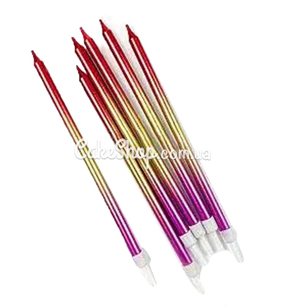 Цена на Свечи тортовые Омбре красно-золото-малиновые равна 60 грн.