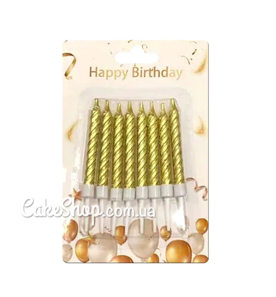 Цена на Свечи тортовые Спираль золото, 8 шт равна 40 грн.