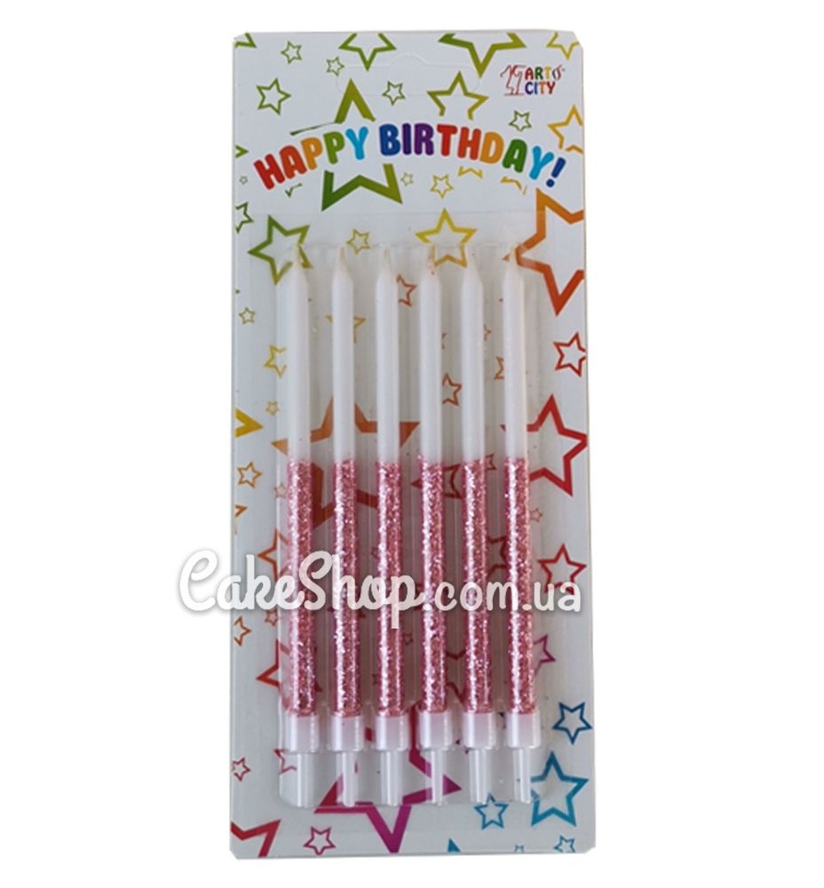 Свечи тортовые высокие белые с розовым