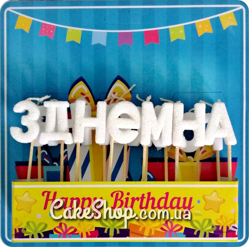 Свечи тортовые З ДНЕМ НАРОДЖЕННЯ (укр.) Белый блеск