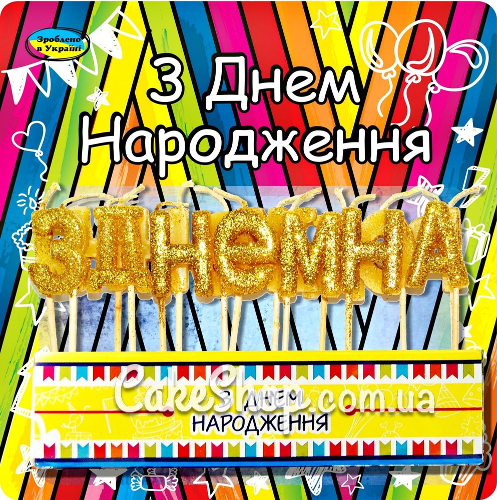 Свечи тортовые З ДНЕМ НАРОДЖЕННЯ (укр.) Золотые