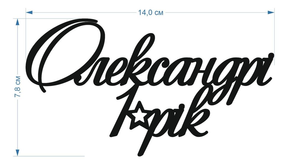 2. Размер ....13 см.... (отталкиваемся от более главного параметра, или высота или ширина, какой параметр есть в приоритете. Если топпер с ножкой то размер указывайте самой надписи, а размер ножки указывайте.