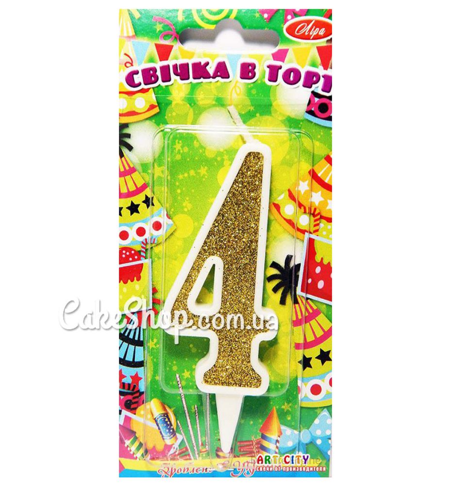 Цена на Тортовая свеча цифра Классика золото - 4 равна 12 грн.