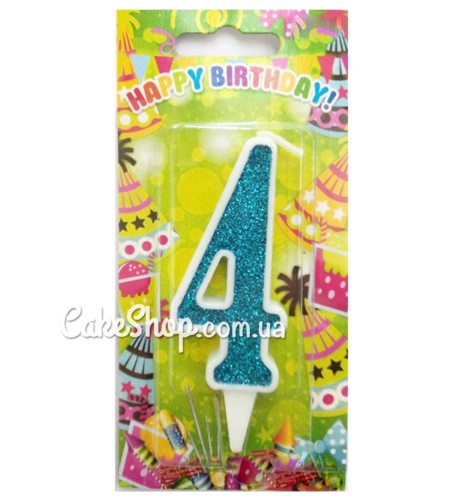 Цена на Тортовая свеча цифра Классика аквамарин - 4 равна 12 грн.