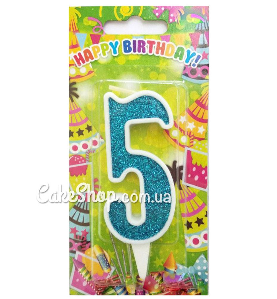 Цена на Тортовая свеча цифра Классика аквамарин - 5 равна 12 грн.