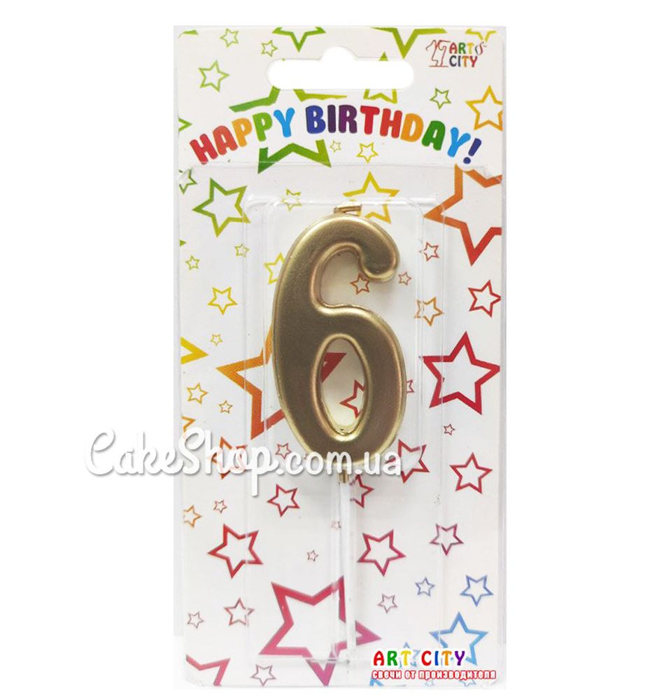 Цена на Тортовая свеча цифра Металлизированная золото - 6 равна 25 грн.