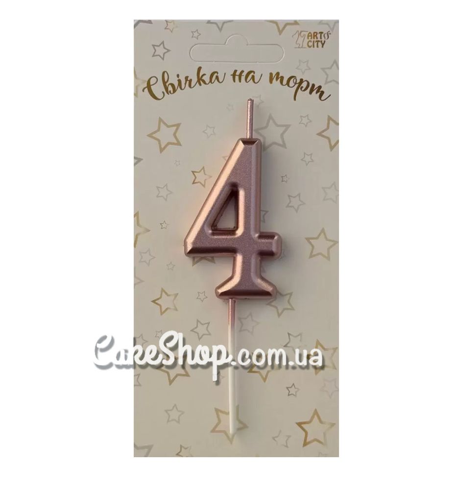 Цена на Тортовая свеча цифра Металлизированное розовое золото - 4 равна 25 грн.