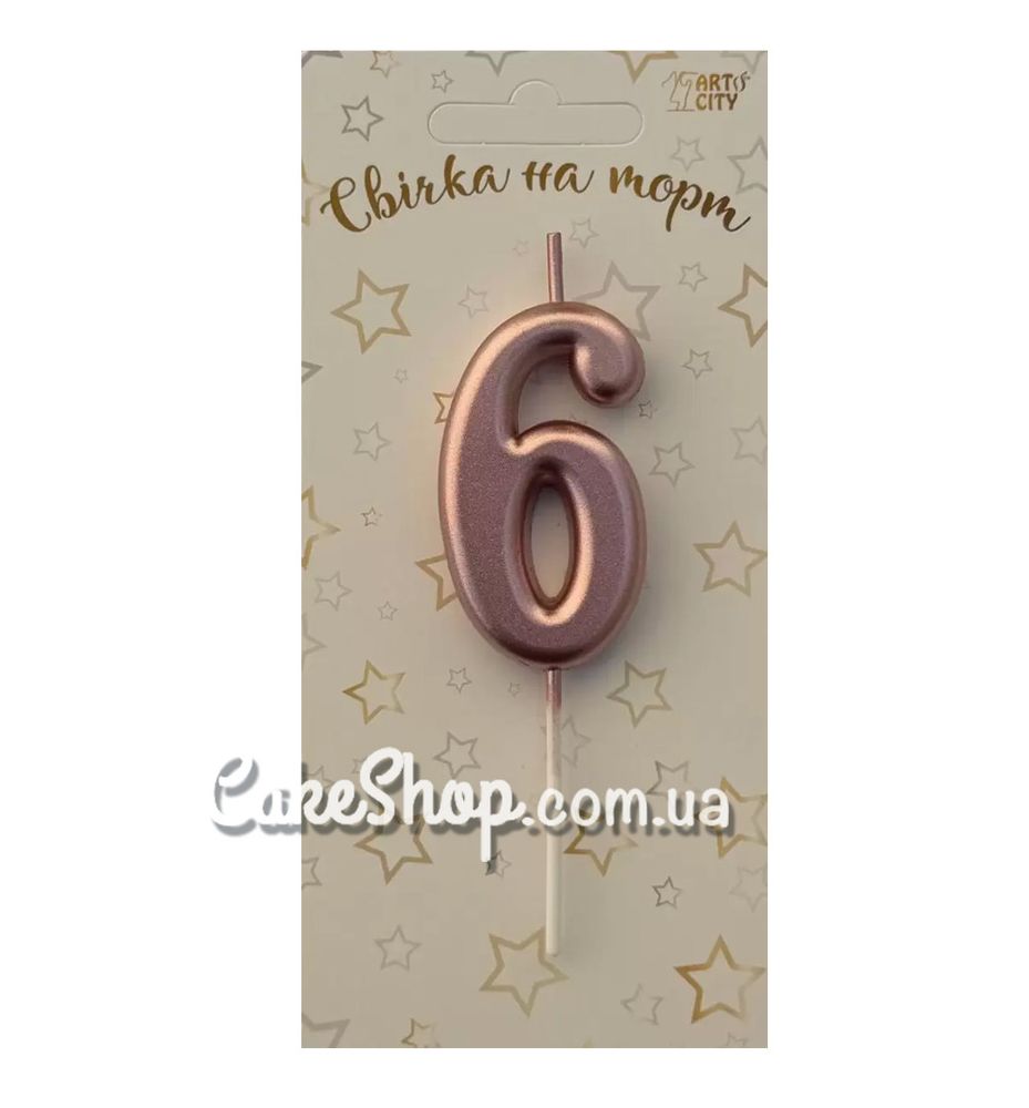 Цена на Тортовая свеча цифра Металлизированное розовое золото – 6 равна 25 грн.