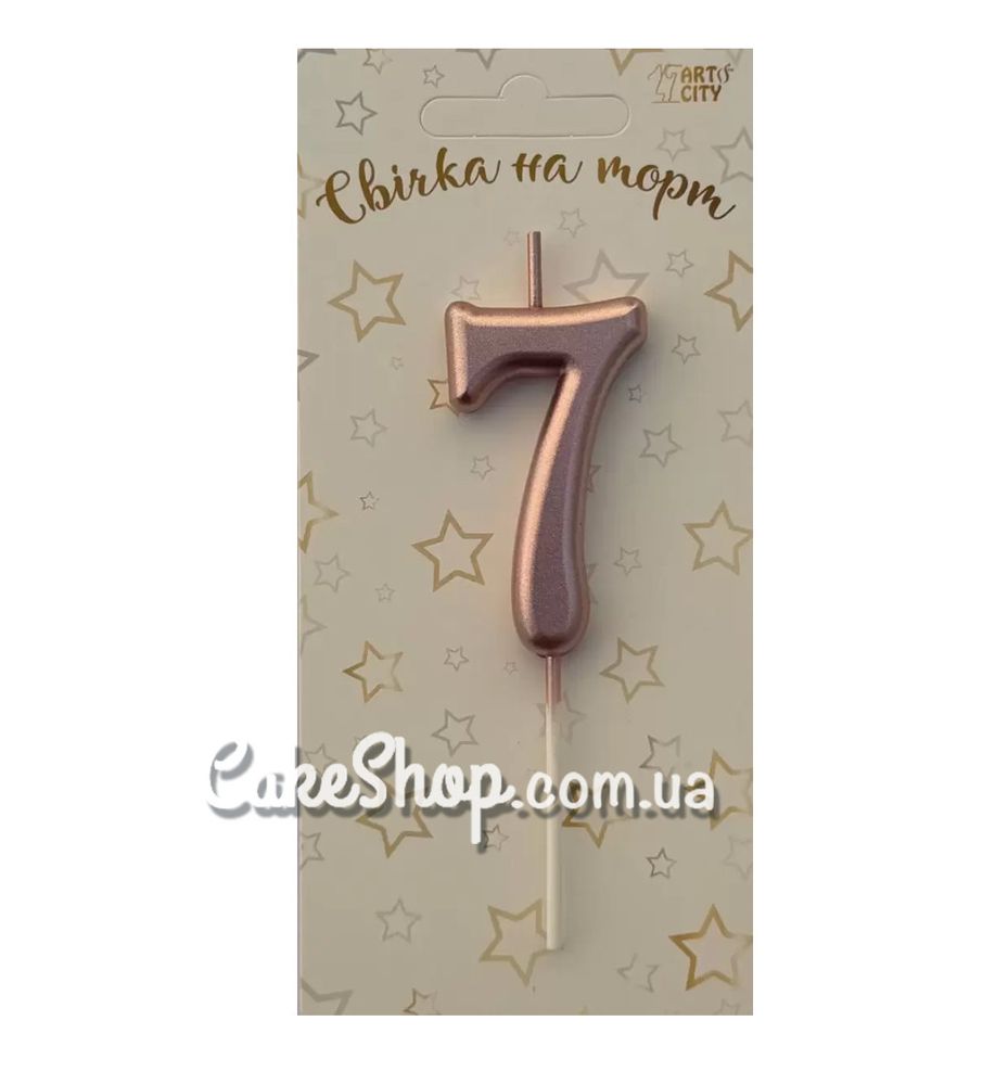 Цена на Тортовая свеча цифра Металлизированное розовое золото – 7 равна 25 грн.