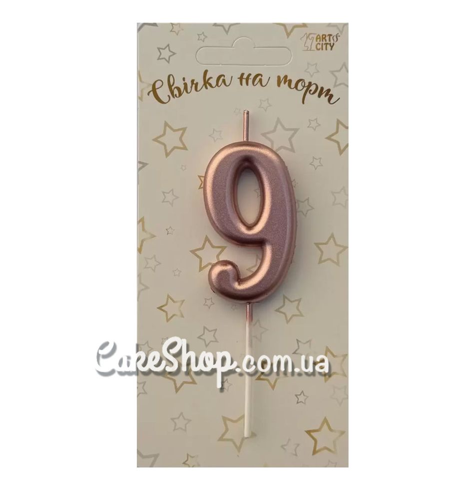 Цена на Тортовая свеча цифра Металлизированное розовое золото – 9 равна 25 грн.