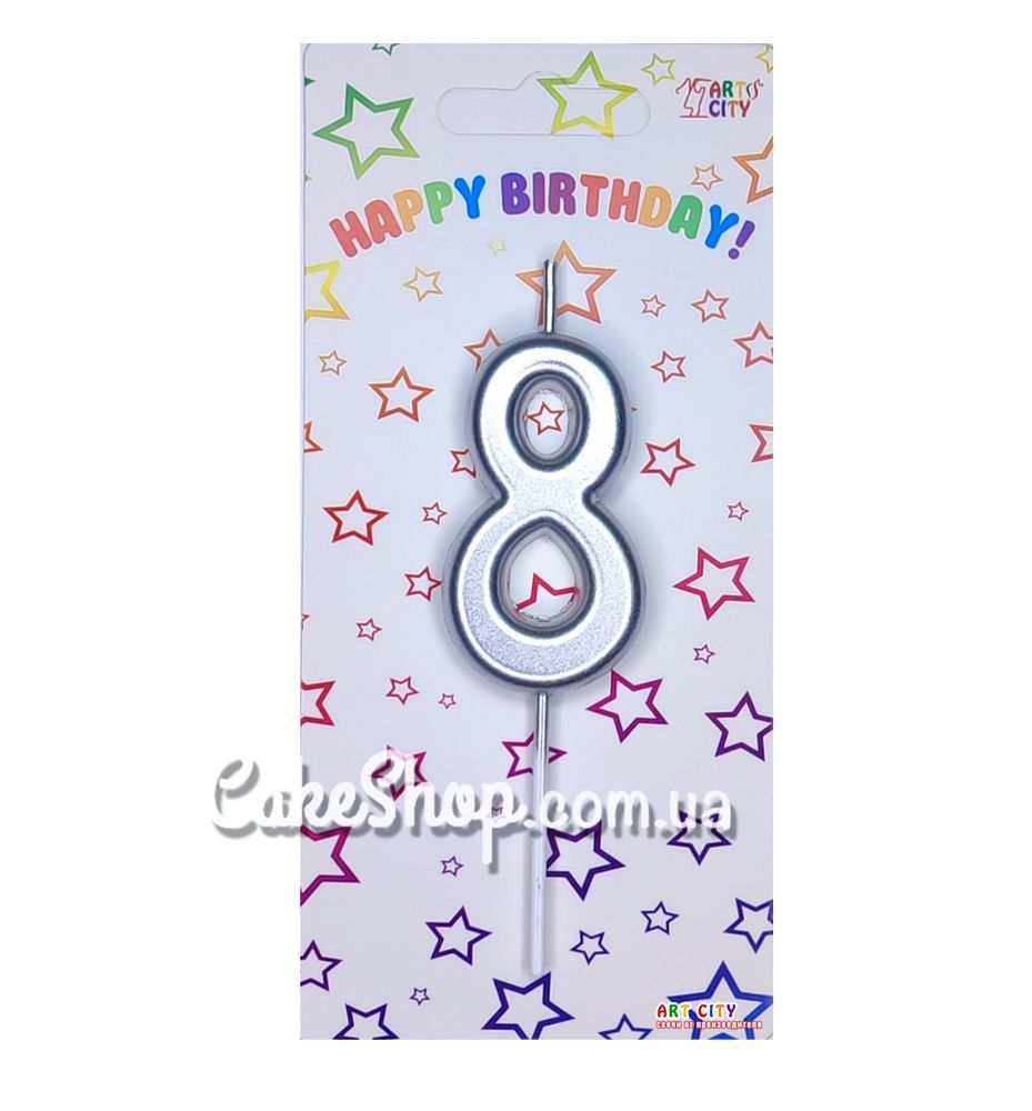 Цена на Тортовая свеча цифра Металлизированное серебро - 8 равна 25 грн.