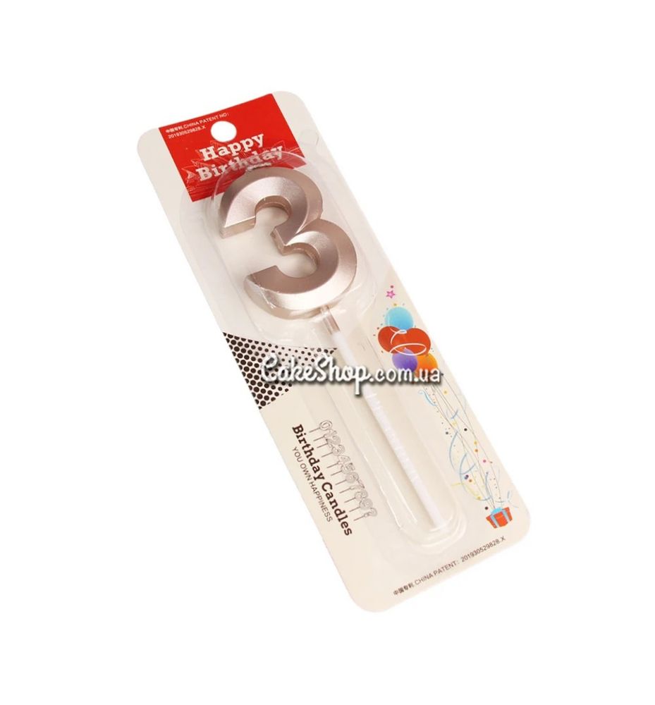 Цена на Тортовая свеча цифра розовое золото - 3 равна 47 грн.