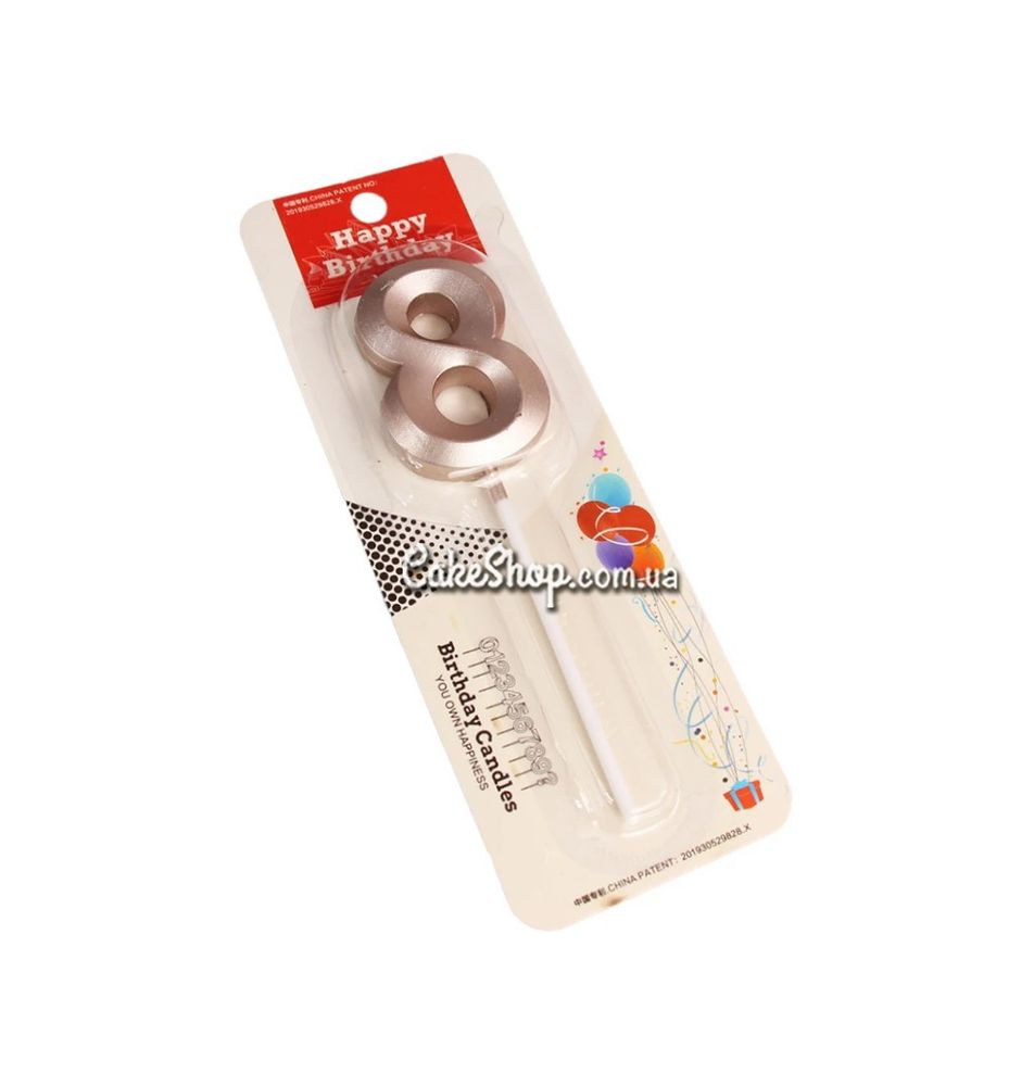 Цена на Тортовая свеча цифра розовое золото - 8 равна 47 грн.