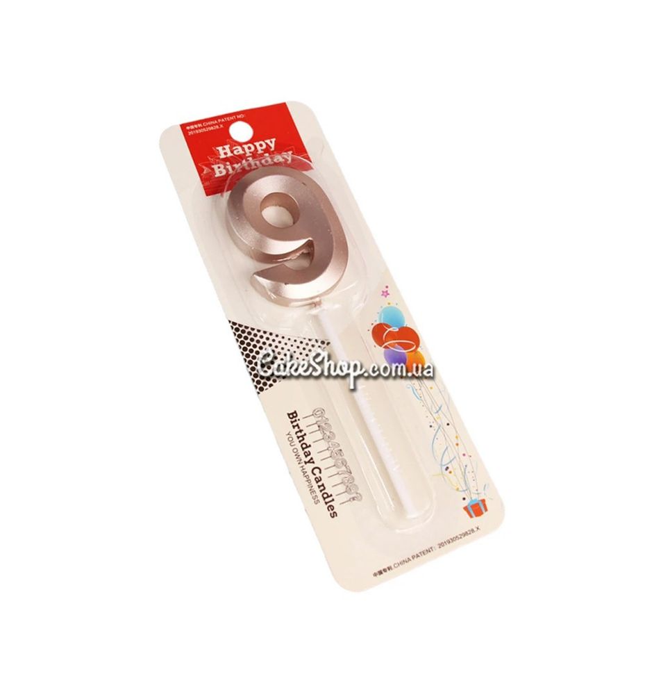 Тортовая свеча цифра розовое золото - 9