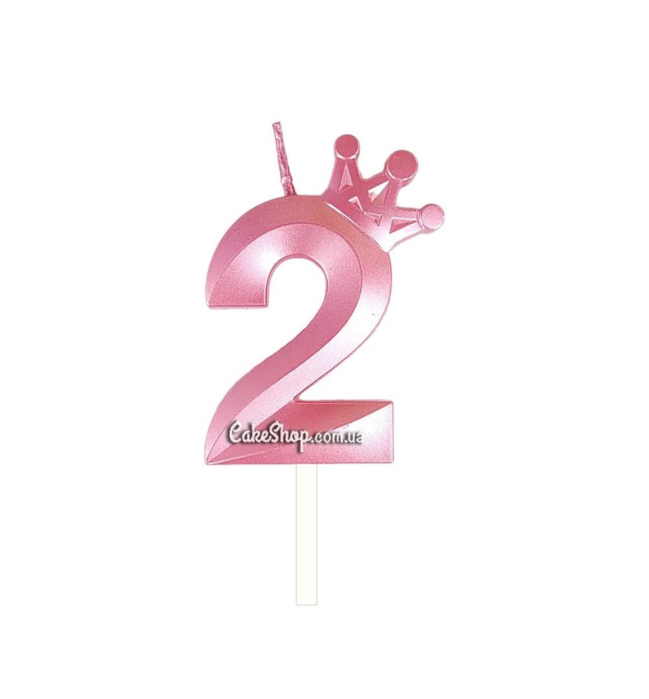 Цена на Тортовая свеча цифра с короной розовая - 2 равна 50 грн.