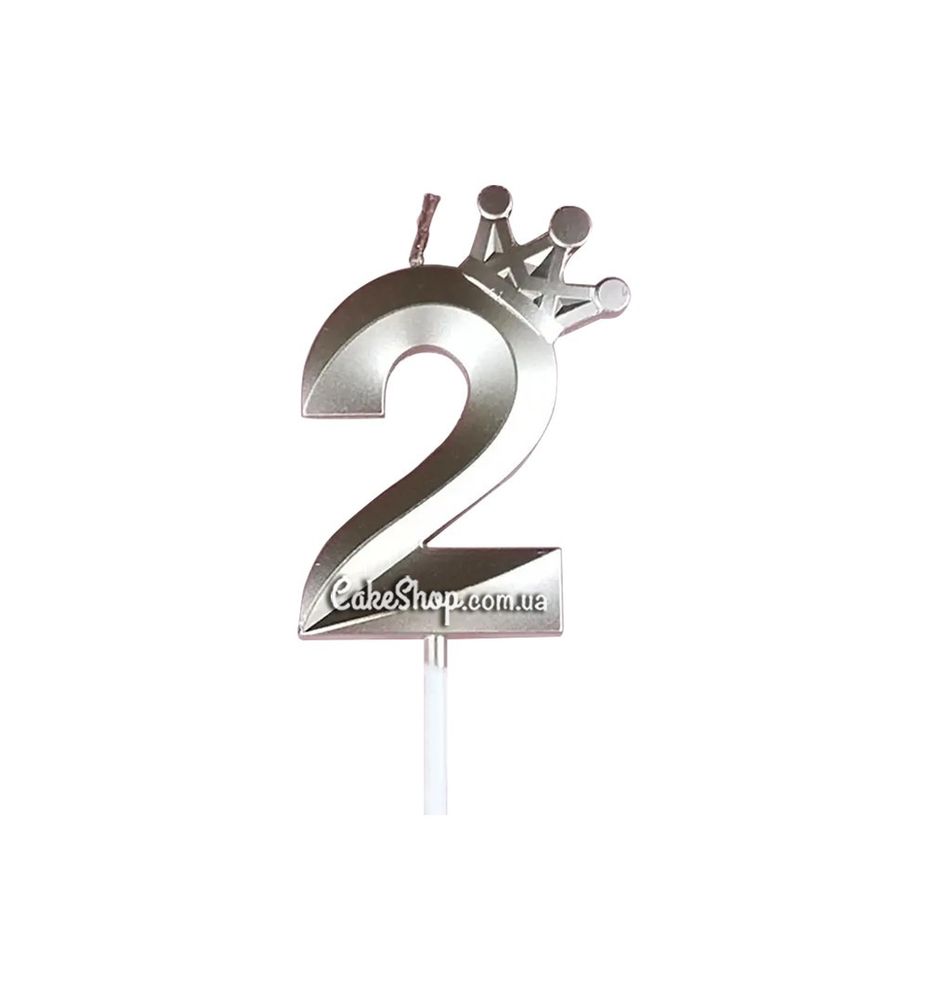 Цена на Тортовая свеча цифра с короной розовое золото - 2 равна 50 грн.